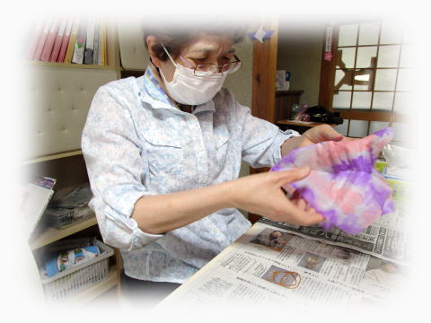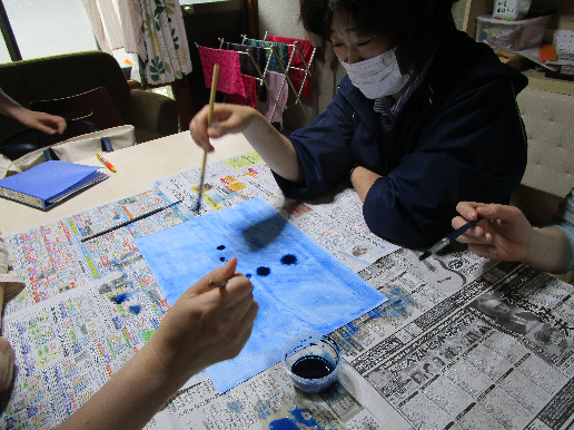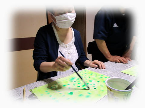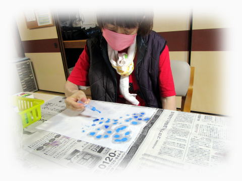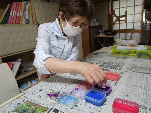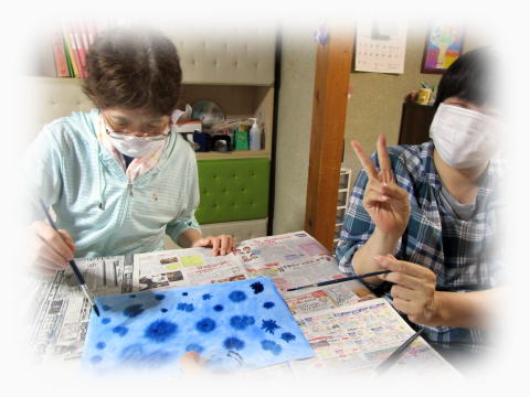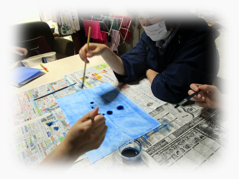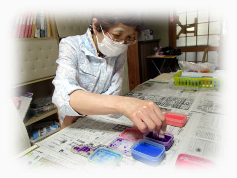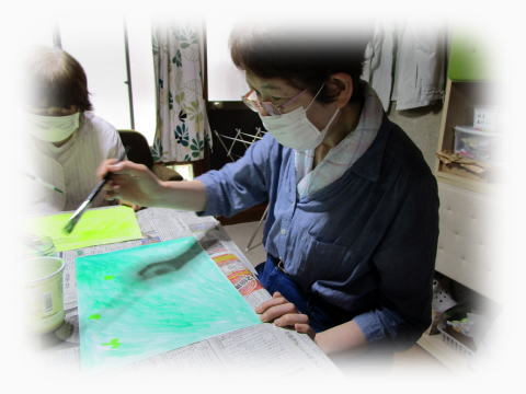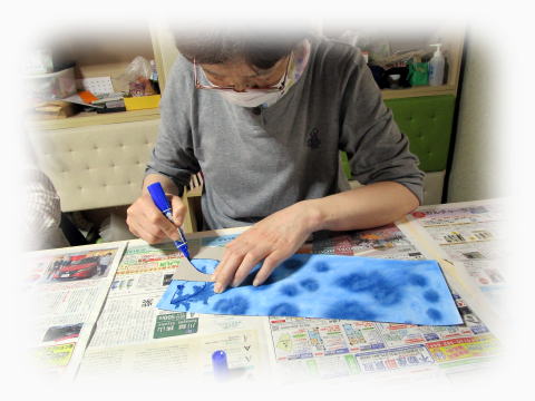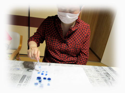 その和紙に絵の具をつけて、広げていきます。