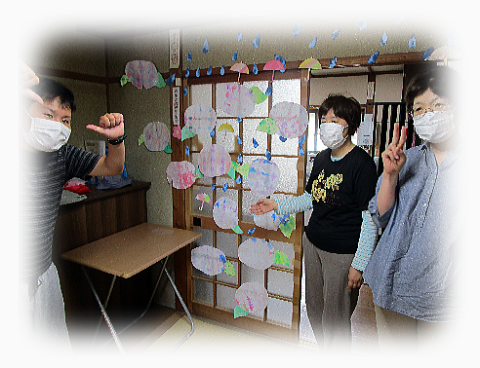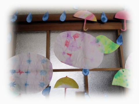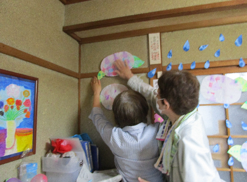 切った葉っぱやしずくをみんなで貼りつけて完成です!!!