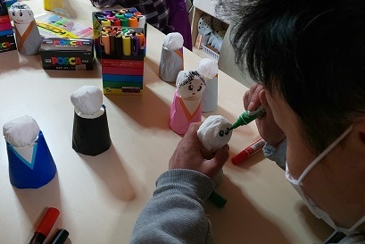 | 人形の 顔を描いて、様々な表情が出来上がっていきます。 |