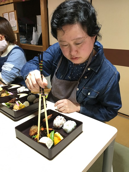 役割分担をしながら、一つひとつ丁寧に、彩りよく盛り付けていきます。 |