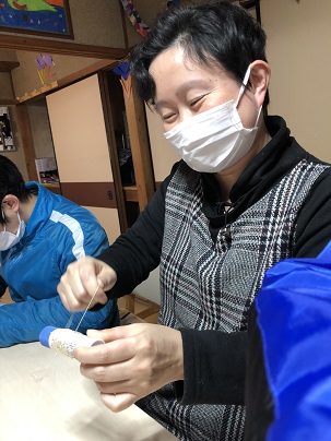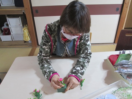 母の日の活動ということで、今回は素敵な花の置物を作りました。