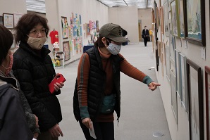 一緒に来ている利用者さんの作品を見つけて「ここにあったで」と教えて下さる皆さん。 こういう時もお互いに助け合っておられました。 |