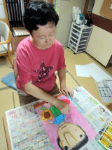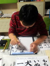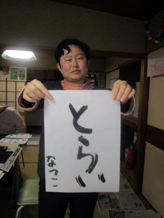 平成30年、新しい年を迎え、どれみふぁ荘で書初めを行ないました。 普段、あまり筆を持たないので、最初はうまく筆がすすみませんが、何回も練習して納得のいくまで半紙に文字を書いていきます。そうして書いているうちに、今年の目標や、願望が定まってきて、筆も上手にすすんできました。 そしていよいよ清書。はじめはおしゃべりしながら書いていた文字も、このときばかりはみなさん真剣な様子で、黙々と文字を書いておられます。しばらくして、「できた!」との声があがり、嬉しそうに出来上がった書初めを見せて頂きました。 書きあがった文字を見てみると、みなさんの意気込みがかんじられる文字ばかり!!中には「好き」と大きく書かれた文字もあり、誰が好きなんですか?と聞くと、照れ笑いされながら一言、「内緒(笑)」と、何とも言えない笑顔で返答されていました。 ”一年の計は元旦にあり”と申しますが、みなさんそれぞれの想いを文字にされたようです。 |
