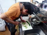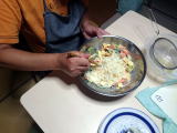 | 毎週木曜日は、どれみふぁ荘のご利用者にとって、ちょっぴり特別な日・・・それは、自分たちでお昼ごはんを作るからです。今回は、その中から、鮭のバターソテーをリポートします。 調理をする前の日、つまり、水曜日の午前中に、必要な食材の買い出しに出かけます。もちろん、どれみふぁ荘ご利用者が主体となり、必要な食材を購入します。 そして、木曜日。あらかじめ、レシピを参考に役割分担を決め、その役割に沿って、昨日買い出しをした食材を慣れた手つきでテキパキと調理していきます。 |