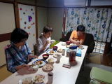 レストランではメニューを見て、それぞれ好きなものを注文しました。お昼ごはんを食べながら、先ほど作った八つ橋の話で持ち上がり、楽しい昼食となりました。