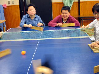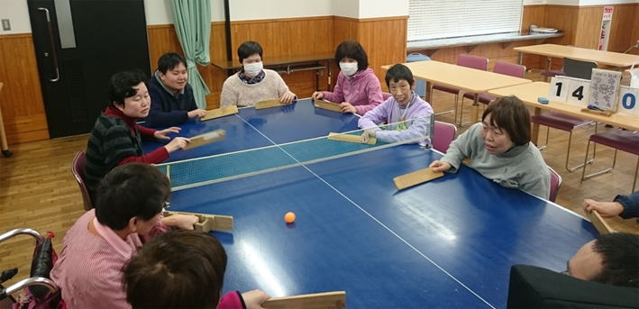 どれみふぁ荘で毎週火曜日に行なっている卓球バレーに、デイサービスご利用者が参加して、まさに試合さながらの迫熱した卓球バレーとなりました。前回(下の記事参照)はデイから2名の参加がありましたが、今回は、前回の卓球バレーが好評だったため、デイからは4名の参加がありました。 卓球バレーの準備、チーム決め、片付けなどなど、全ての進行は、どれみふぁ荘のご利用者で行っています。このような姿を目の当たりにすると、この数年間で培ったソーシャルスキルトレーニング(SST)が活かされているのだなぁ・・と、どれみふぁ荘のご利用者に対して、感心させられました。 |