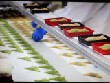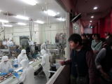 まずは生地作りから始めるのですが、生地が蒸しあがるまで少し時間が掛かるので、その時間を利用し、おたべの工場見学に向かいました。工場では全国各地で販売されている生八つ橋が、たくさんの社員さんの手を介しながら出来上がっていく姿を見ることができ、どれみふぁ荘のご利用者からは感激の声も聞かれました。