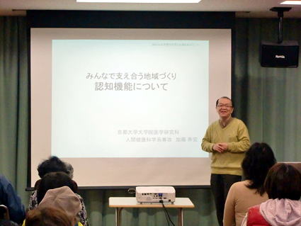 | 福祉の絆づくり事業 | 3月に、みんなで支える地域づくりと題して、京都大学医学部准教授の加藤 寿宏先生をお招きして、地域の方対象に勉強会を行いました。 | ![]() |