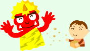 レートと、とんがりコーンを使って、鬼の顔とおかめの顔