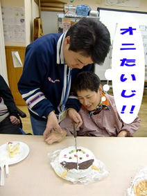明けて2月5日、節分行事の一環で鬼とおかめの形をしたケーキを
