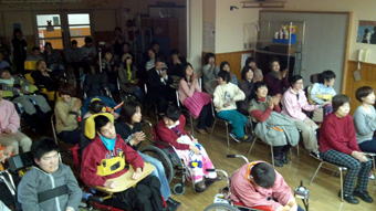午後1時30分の開演を待ちきれずに、会場となったデイルームでは、