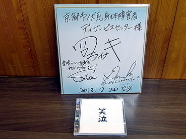 会場を後にされたワライナキのお二人から、当施設ご利用者に、サイン色紙と最新