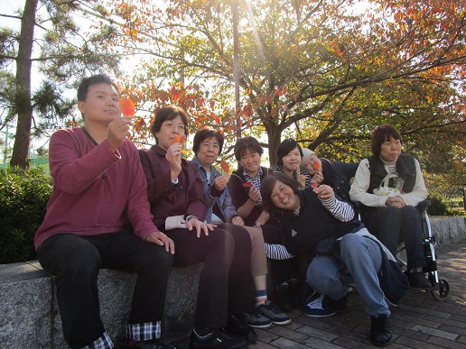 紅葉の季節がやってきました。 後期介護等体験実習生が来て下さいました。実習生さんが考えて下さった活動に皆さんで参加しました。また、七瀬川沿いの紅葉ドライブでゆったりと秋を感じて過ごしました。 |