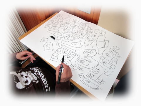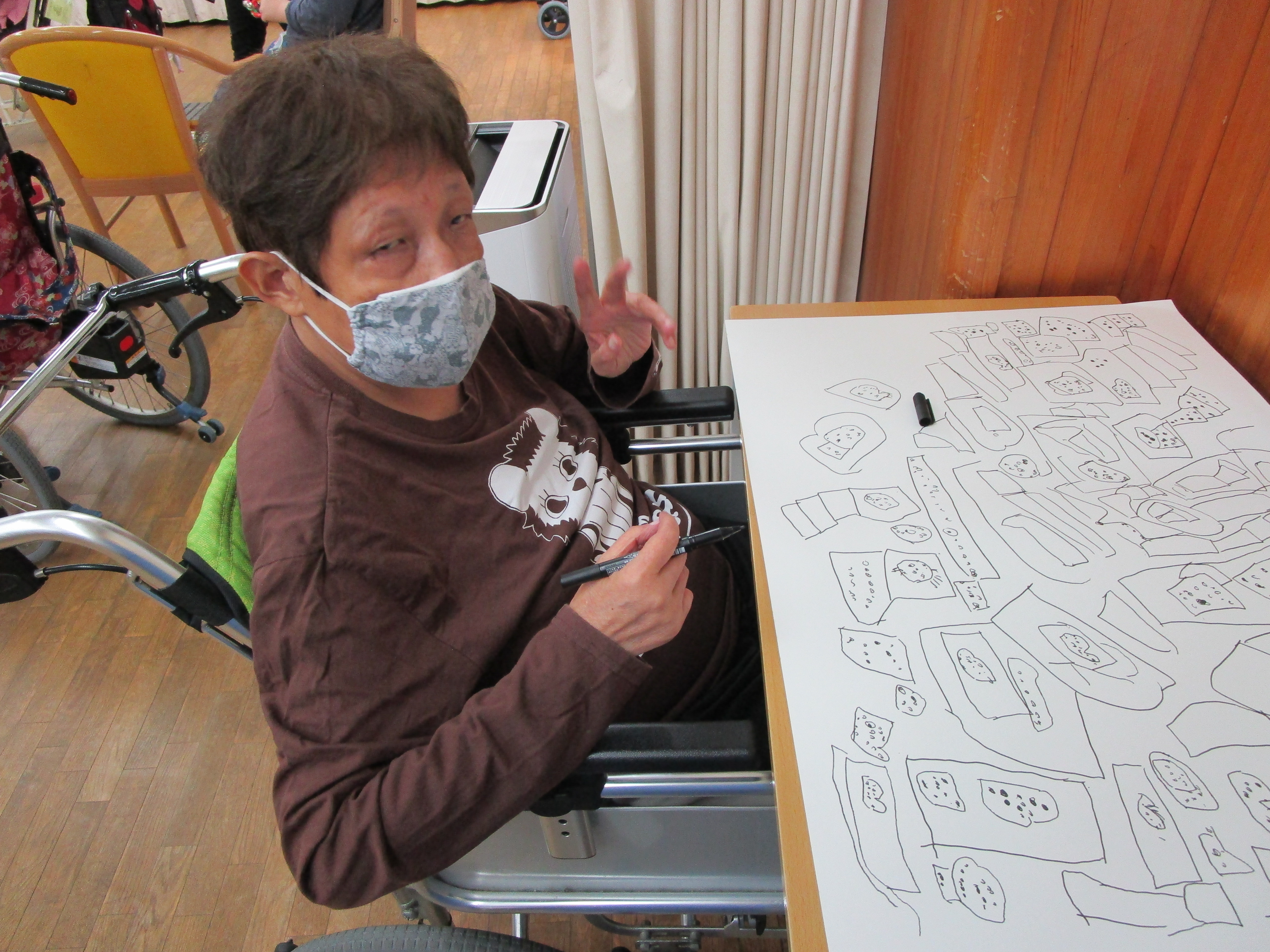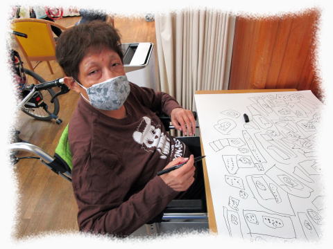 を絵に表しておられる方や、職員が手を添え