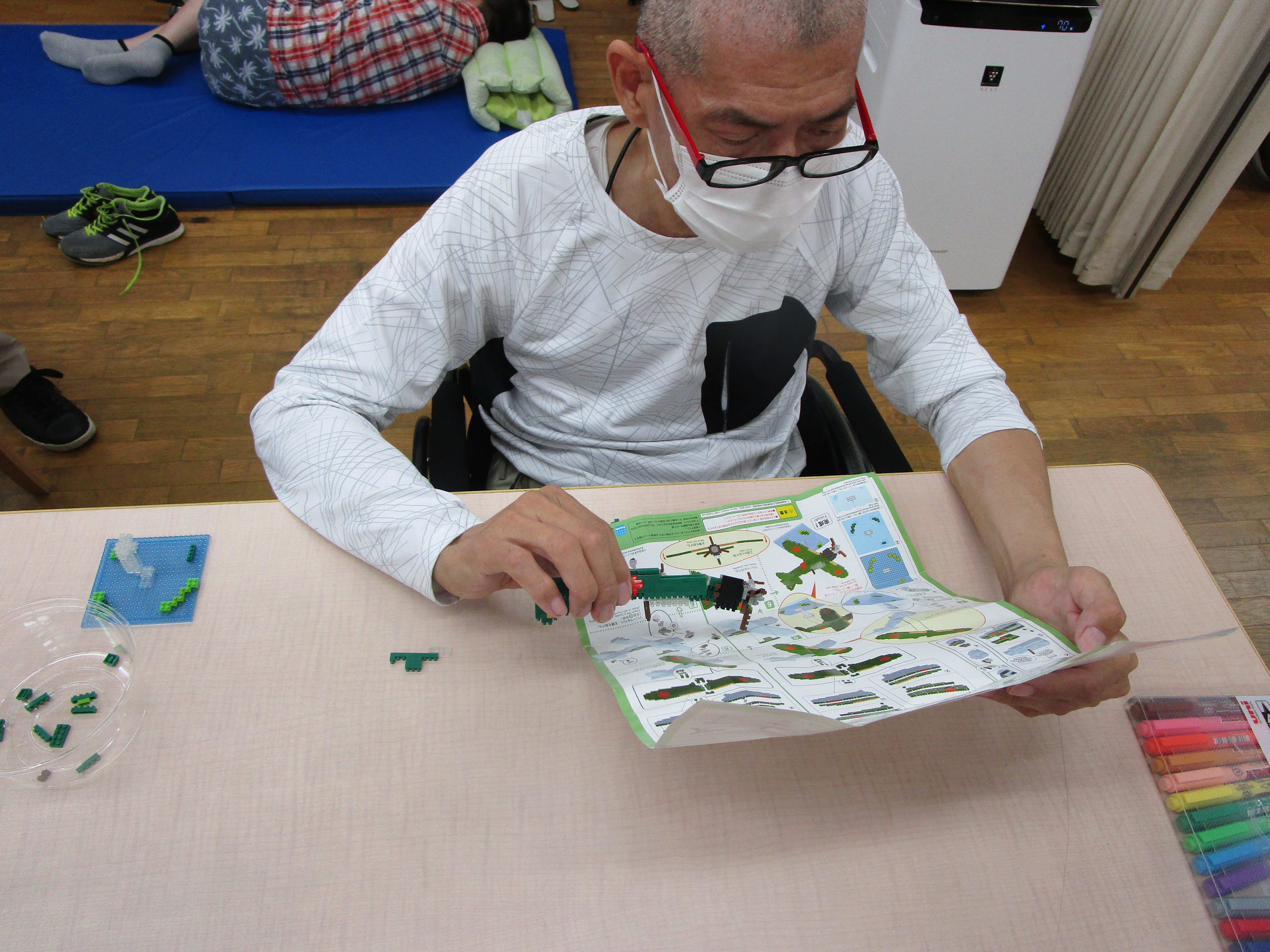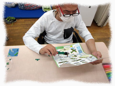 説明書を見ながら細かいピースを繋げて
