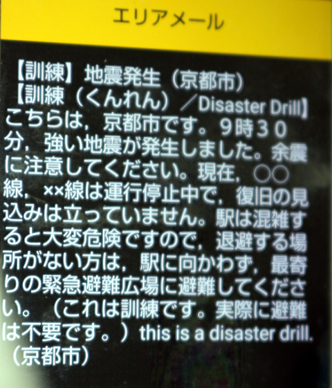 携帯電話の警報が鳴り、