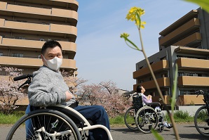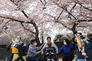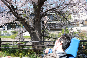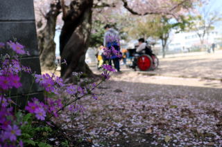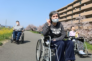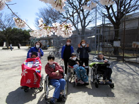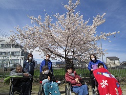 センターの近くには桜の名所が多く、青空のもと満開 の桜をゆったりと眺める利用者さんと職員でした。 地面に出来た桜のじゅうたんも綺麗ですね。