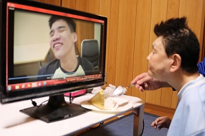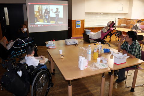 ケーキを食べて伏見デイでの活動をダイジェストにし た動画を鑑賞。「懐かしいなあ」「私こんなことして たー?」と思い出を語り、笑い声が溢れていました。