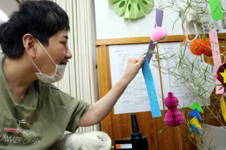 最後は笹に飾って、願いが叶いますようにと祈る皆さん