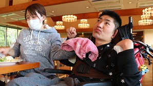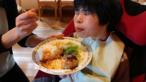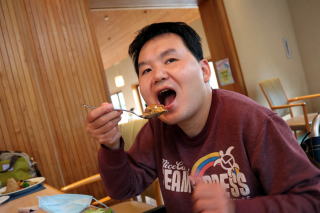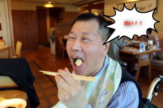 アツアツをバクっと頬張ります!いいお顔ですね!