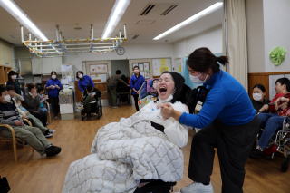 最終日は介護等体験の実習生が考案した輪投げゲームに