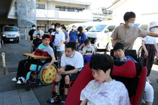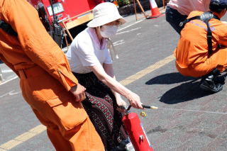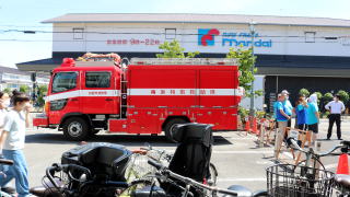 火災を知らせる放送が入り、避難の合図を聞いて一斉に建物の外に避難しました。 暑い中の訓練でしたが、皆さん落ち着いて素早く避難出来ていました 避難訓練の後には、消火訓練も体験しました。 消防士さんから直接教えていただきながら、上手に消火できていました いつ災害が起こるか分からないので、様々な状況を想定しながら訓練を重ねていきたいと思いました。