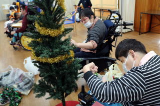 もうすぐクリスマス!ということで、伏見デイでは、クリスマスツリーに飾りつけをしました