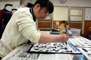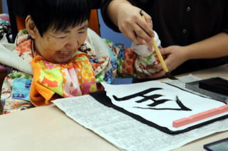 中には今年の目標や好きな食べ物の文字を書いておられる利用者さんもいらっ