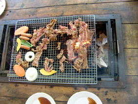 ロで火をおこしました。そして、お肉が焼けてくると、辺り一面に、お肉の焼け