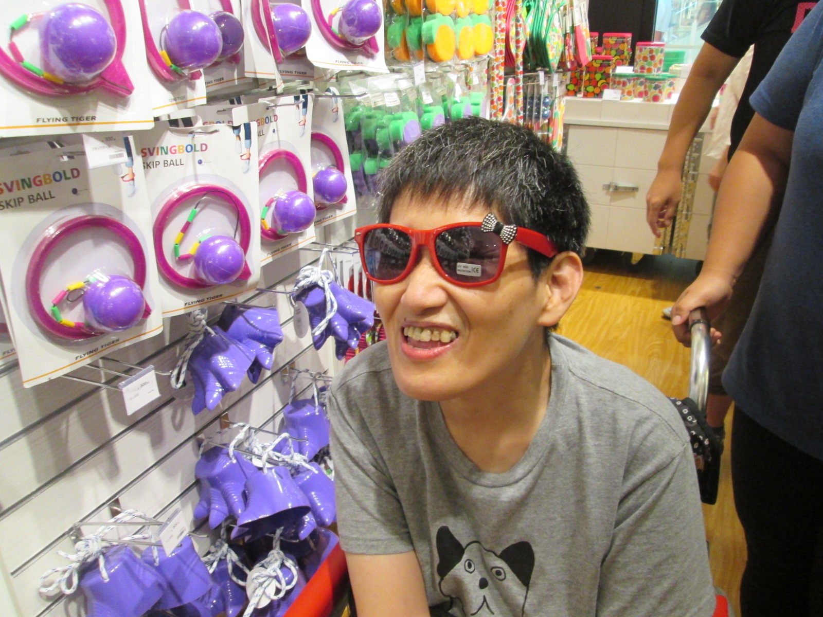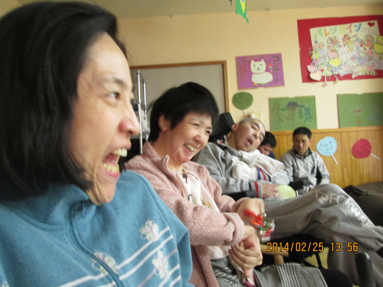 | 講習を終えて、次の日より、早速学んだ知識を現場で活かすため、ipadを持ち出しました。 ここで、以前から『本が読みたい』と、言われていた四肢麻痺の利用者様に、電子書籍をインストールしたipadと、ipadタッチャー、それから、息を吹きかけるとスイッチが入る”ブレススイッチ”を用意し、ipadに繋げました。そしてipad本体の設定を、昨日学んだ通りに設定して、いざ使用。結果は見事、ブレススイッチに息を吹きかけるとページがめくれました。 ※この様子は画面右の動画にあります。 |