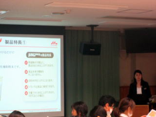 第2部では、株式会社クリニコ(以下:クリニコ)さんの講演が始まりました。クリニコは、森永乳業グループに属する会社のひとつで、主に、嚥下が困難な方に、トロミなどの嚥下補助食品等を製造・販売している会社です。。