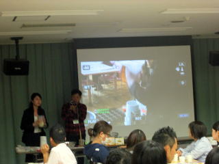 講演では、@人が食べ物と認識する『認知期』A食物を口に入れ、かみ砕く『捕食・咀嚼期』B『口腔期』C『咽頭期』D『食道期』の5つのステップを介して食物が消化しやすい形となって体内に入っていく様子がよく解る講演でした。また、この5つのサイクルの、どれか1つでも機能低下を起こすと、飲み込みが悪くなり、誤嚥や、それに伴う誤嚥性の肺炎のリスクが高まるなどの説明もあり、当日は、飲み物を一切飲まずにビスケット3枚を一気に口に入れ飲み込めるか?という嚥下が困難な状況を、わざと作り出して体験してみるという疑似体験もありました。体験された方に感想をお聴きすると、「こんな些細なことで、飲み込みが悪くなるんですね。普段、何気無しに行なっている嚥下の機能が、ひとつでも悪くなると、大変なのが良く解りました。」と、参加者より。実際に障害を持っておられる方の気持ちになって理解することができたように思います。