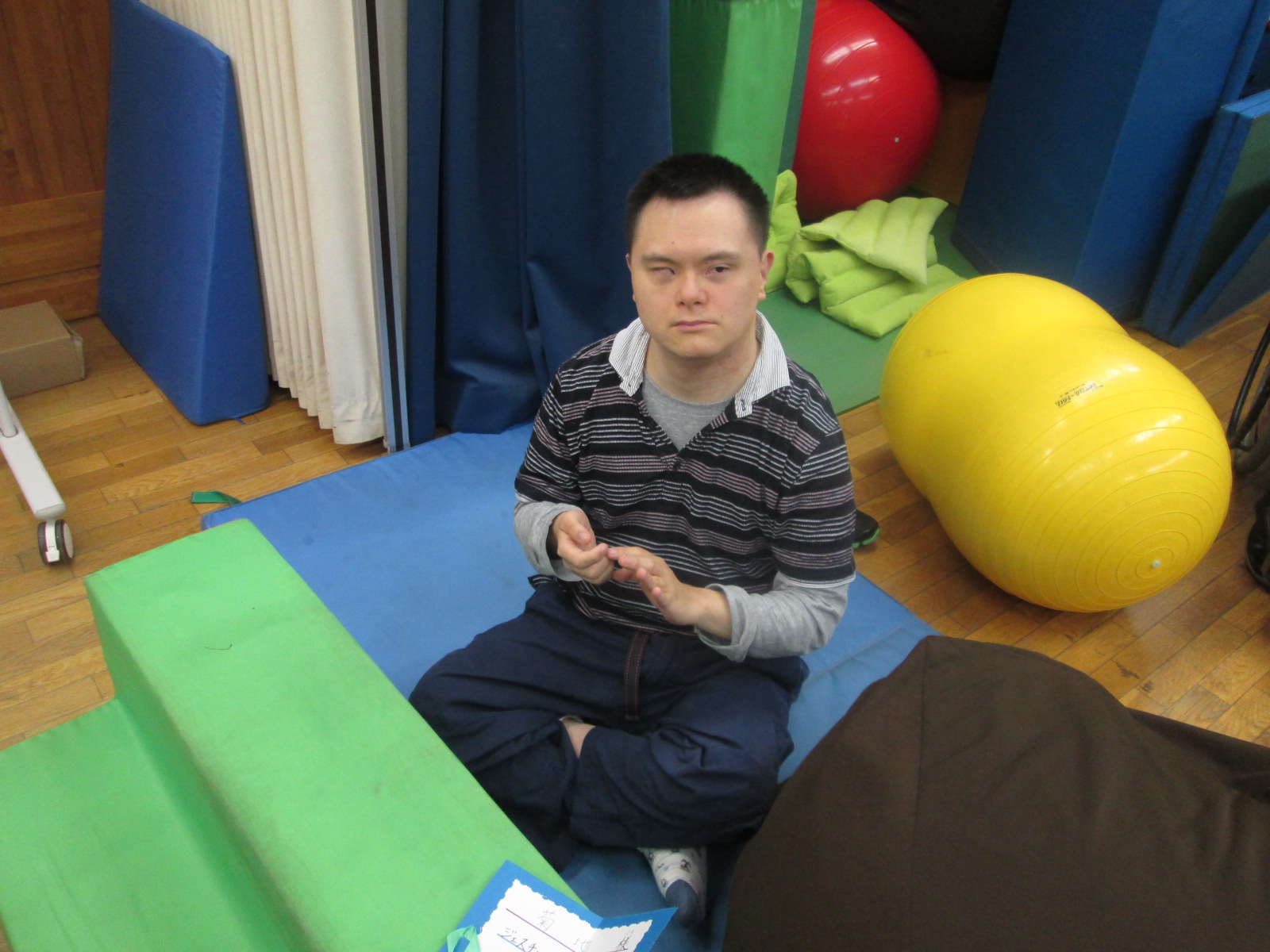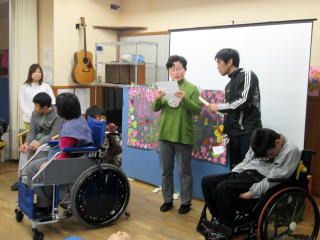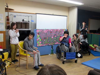 当センターでは、この春学校を卒業された4名の方を迎えることになり、皆さん明るくて元気いっぱいです。そんな明るく楽しい利用者様を迎えるにあたり、デイサービスで歓迎会を企画しました。この日のために、日ごろの活動時間を利用して、『伏見デイへようこそ(左写真参照)』のポスター等を作成しました。利用者様と職員とで作成したこのポスター。新しくご利用となられた利用者様からも好評でした。 |