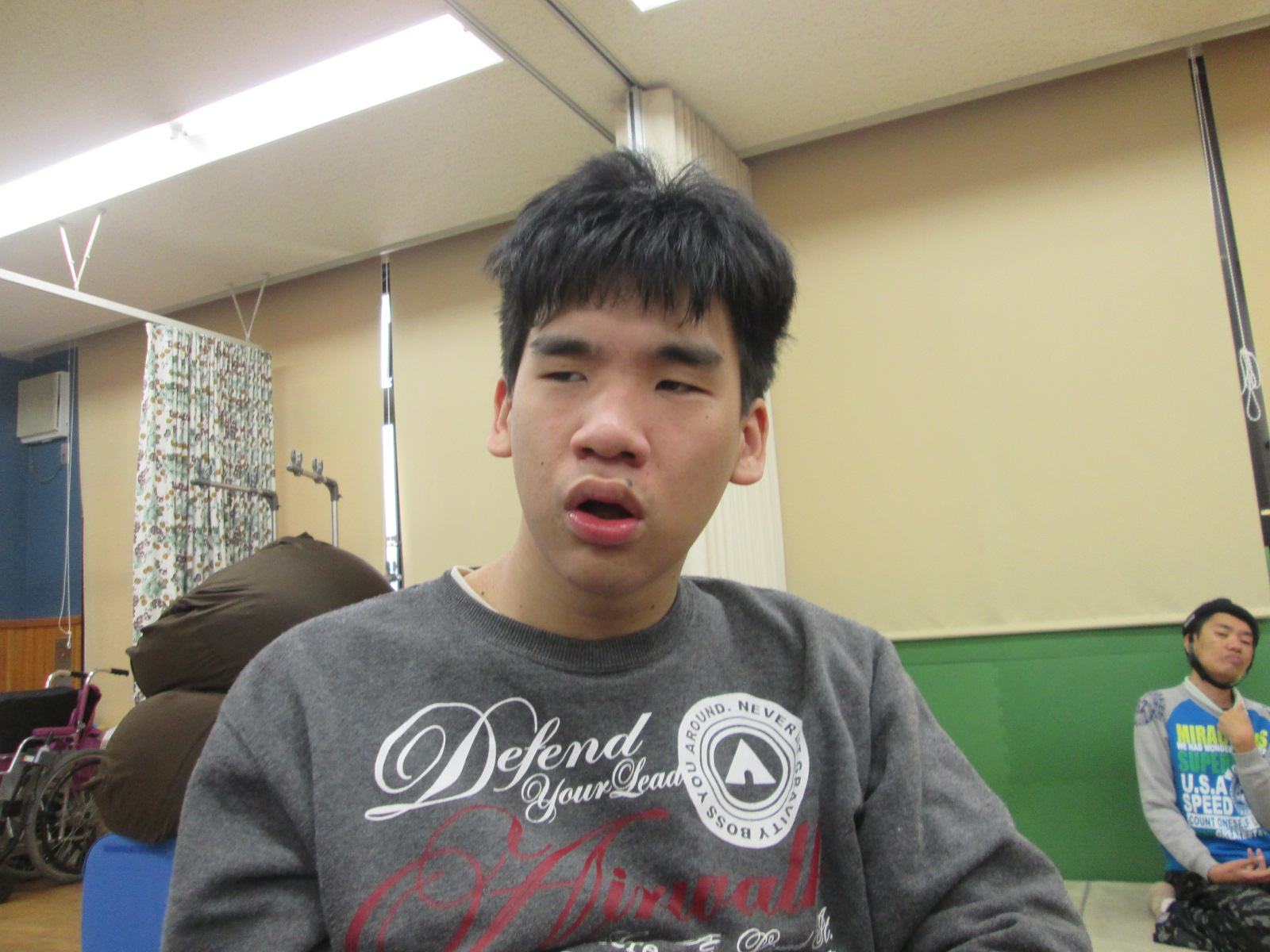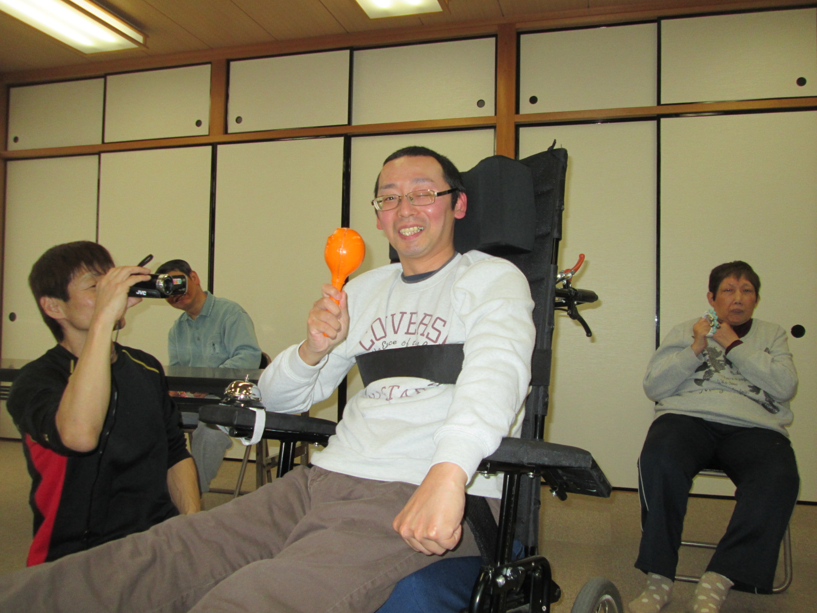 | 歓迎会冒頭で、利用者様から、新しく利用を開始された方々へ、歓迎の言葉を頂きました。 その後職員より、新規利用者様の簡単な経歴や、趣味などの紹介があり、利用者様の中には、同じ趣味を持つ方もおられ、デイルームは、しばしその話題で盛り上がる場面もみられました。 ![]() |
