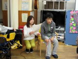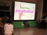 さらに歓迎会では、職員がPowerPointで製作した歓迎会用スライドを上映しました。スライドは、主に伏見デイサービスの一年の活動を紹介した内容となっており、写真の他に動画も掲載。より伏見デイサービスの活動が解る内容に仕上げました。 スライド自体は昨年の忘年会で使用したスライドを再編集し、歓迎会用にアレンジしたものを上映しました。なので、内容は昨年末の忘年会で紹介た内容のモノとほぼ同じなのですが、今年の2月に催された”お楽しみ会”の様子など、少し目新しい部分もあり、新規利用者様のみならず、この日参加された利用者様も楽しんで観ておられました。 スライドが終了後、時任所長から「これからの伏見デイに期待して下さい。」と、歓迎のご挨拶を頂き、新規利用者様もニッコリ・・・期待と希望に溢れた歓迎会となりました。 |