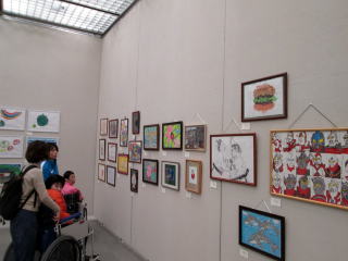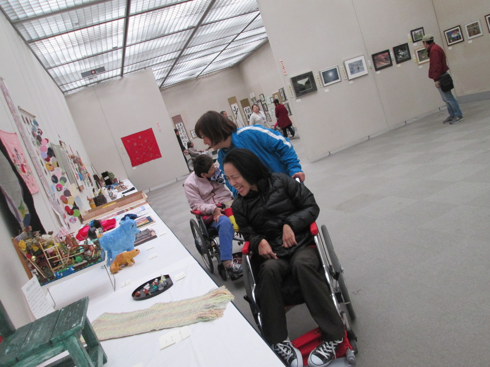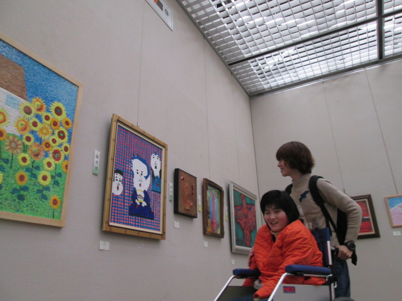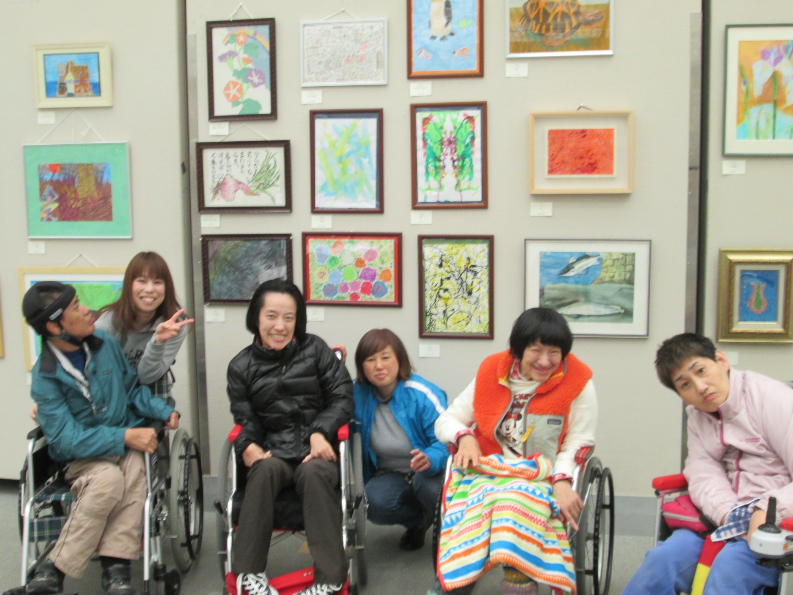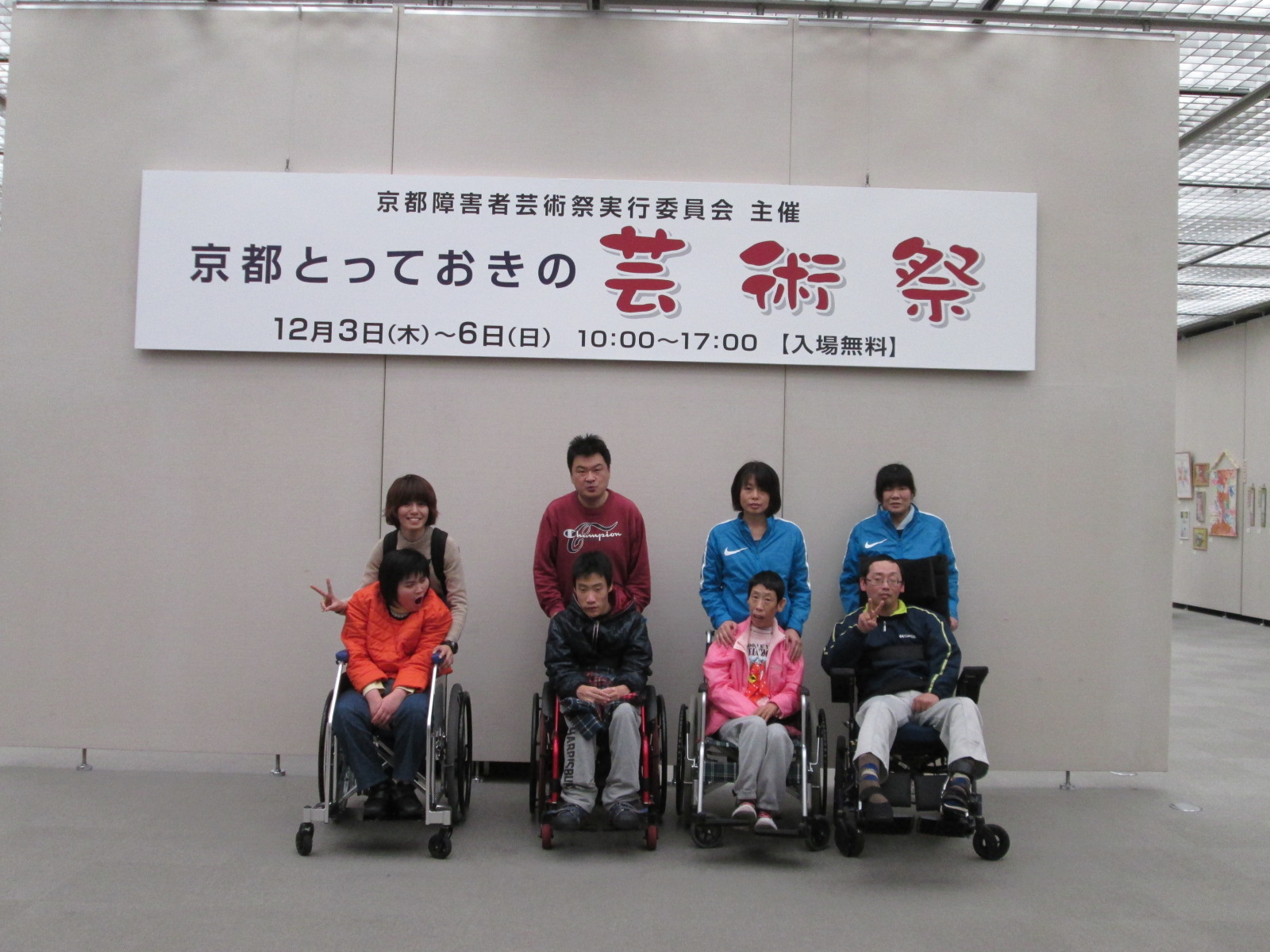 今年9月に、当施設で開催された、ふれあい祭りで大変好評を頂いた利用者様の作品を、12月3日〜6日まで、京都のみやこめっせで開催れた、”とっておきの芸術祭”に出展しました。この作品は、利用者様が個別活動の時間や、創作の時間を活用し制作したもの。今年度より、職員の山下さんが中心となり、「モダンテクニック」という技法を用いて、利用者様の感性に任せた、個性のある作品に仕上がり、まさしく”芸術”と呼ぶにふさわしい作品へと仕上がりました。その力作揃いの作品展に、デイの活動時間を利用して、展覧会に行ってきました。 |