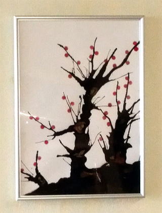 ![]() 望月 善光様 作 題名:紅梅図 技法:ステンシル・ドリッピング/水彩絵の具 花の部分はステンシル、枝の部分はストローで絵の具を吹いて描きました。絵筆とはまた一味違った面白みのある作品です。 |