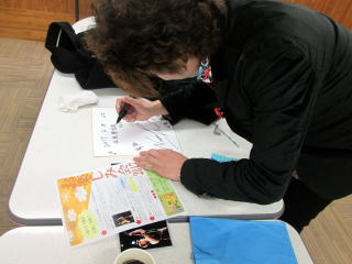 ライブが終了し、古賀さんが出入口でサイン&握手会をされました。中には、一緒に記念撮影をされる方も多く、訪れた皆さまはとても喜んでおられました。 今回、お忙しいスケジュールの合間を縫って調整して頂いた古賀さん、本当にありがとうございました。ご利用者、職員一同、応援しておりますので、これからも頑張って下さい。 |