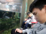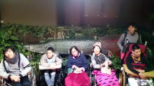 | レストランには、皆さんが好きそうなメニューがズラリ!中には、名古屋が近いこともあってか、大きなトンカツを惜しみなく盛り付けた名物の”味噌カツ丼”なるものもありました。 関西圏ではなかなか食べることができない地元ならではのメニューに舌鼓を打ち、皆さんも大満足!!お腹がいっぱいになって、水族館へと入場しました。 アクアトトぎふは、岐阜と愛知を流れる川、「長良川」に生息する淡水魚をテーマにした水族館で、長良川の上流・中流・下流に生きる魚がいます。 |