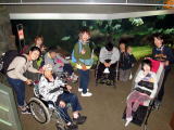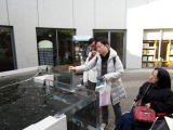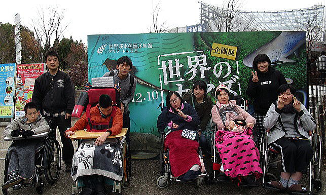 館内を巡り終えた頃、屋外ではアクアトト名物(?)の『アシカショー』が始まろうとしていましたので、最後にこれを見ることにしました。 席に着席してすぐにアシカショーが始まり、水族館のトレーナー、アシカの”マリン”が登場!トレーナーとマリンの駆けあいが面白いショーでした。また、来場者もマリンとふれあえる企画があり、ご利用者もマリンと一緒に輪投げをして楽しまれていました。 |