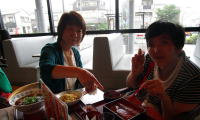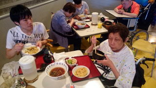 お昼は園内にあるレストラン“チャンバラ”で食事をしました。 メニューを眺めていると、どれも美味しそう・・・京野菜で有名な九条葱をふんだんに使った“九条葱ラーメン”や、うな重、デミたまハンバーグにカレーライスと、皆さんが大好きなメニューで、アレも食べたい、コレも食べたいと、どれにしようか迷ってしまいます。ようやく食べたいものが決まり、注文。普段の昼食とはまた違う雰囲気で、美味しく頂きました。 |