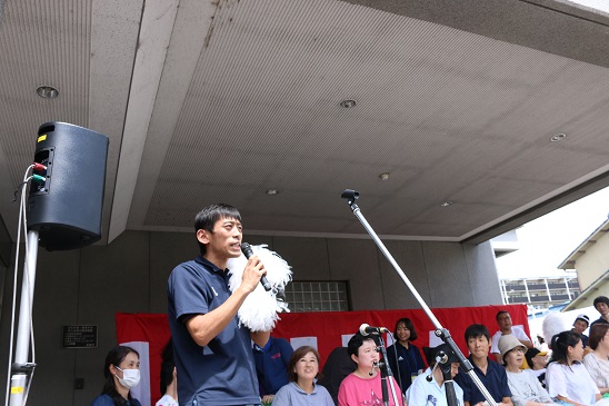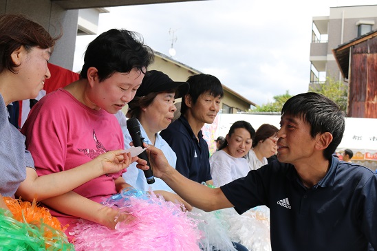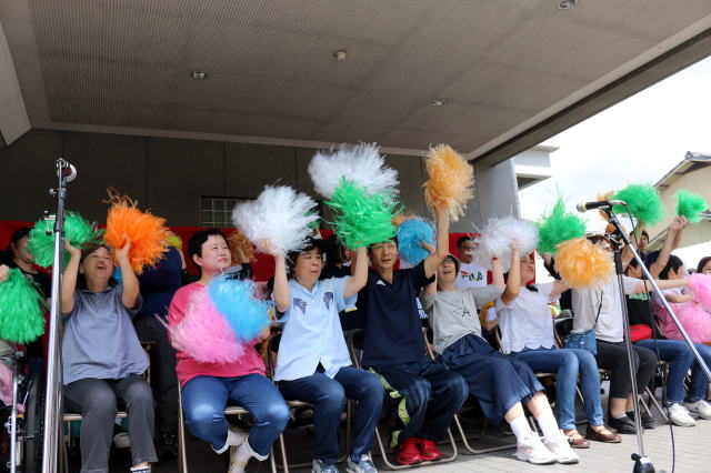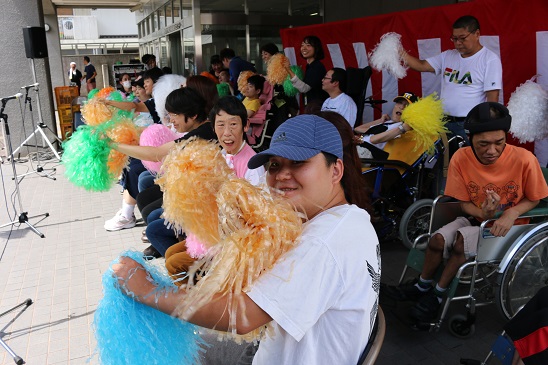 今年のデイの出し物は、歌とダンス。手作りの” ポンポン”を持ち、ステージ発表を頑張りました。 この日の為に、6月頃から練習を開始しましたが、開始直後はバラバラで、ぎこちない動きでした。 練習を重ねていく度に、ひとつひとつの動作が重なり合い、みなさんの”いき”が合ってきたのが感じられました。 そして8月に入ってからは、練習も本格化!どれみふぁ荘のご利用者も合流して、合同練習をしました。 |