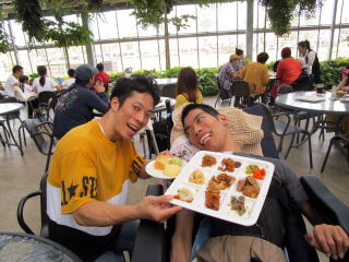 到着して早速、昼食を摂ることに・・・昼食は、施設内にあるレストラン。あらかじめ予約をしていたので、スムーズに食事をすることができました。またメニューはバイキング方式で、好きなものを好きなだけ食べられるとあって、みなさんのお腹も満たされたかと思います。 |