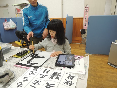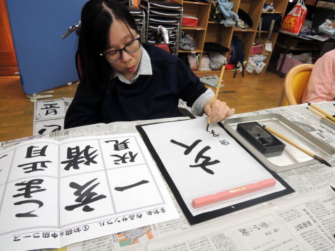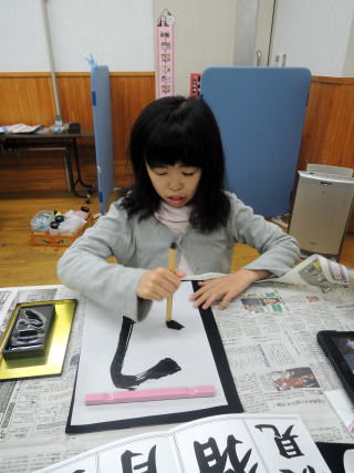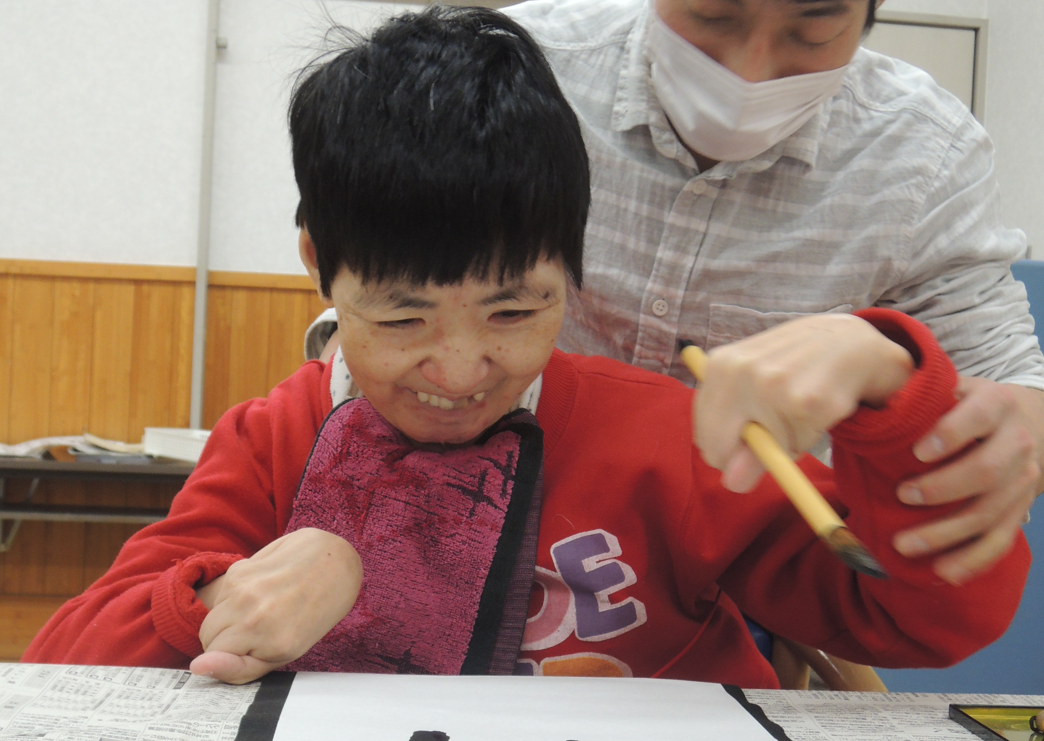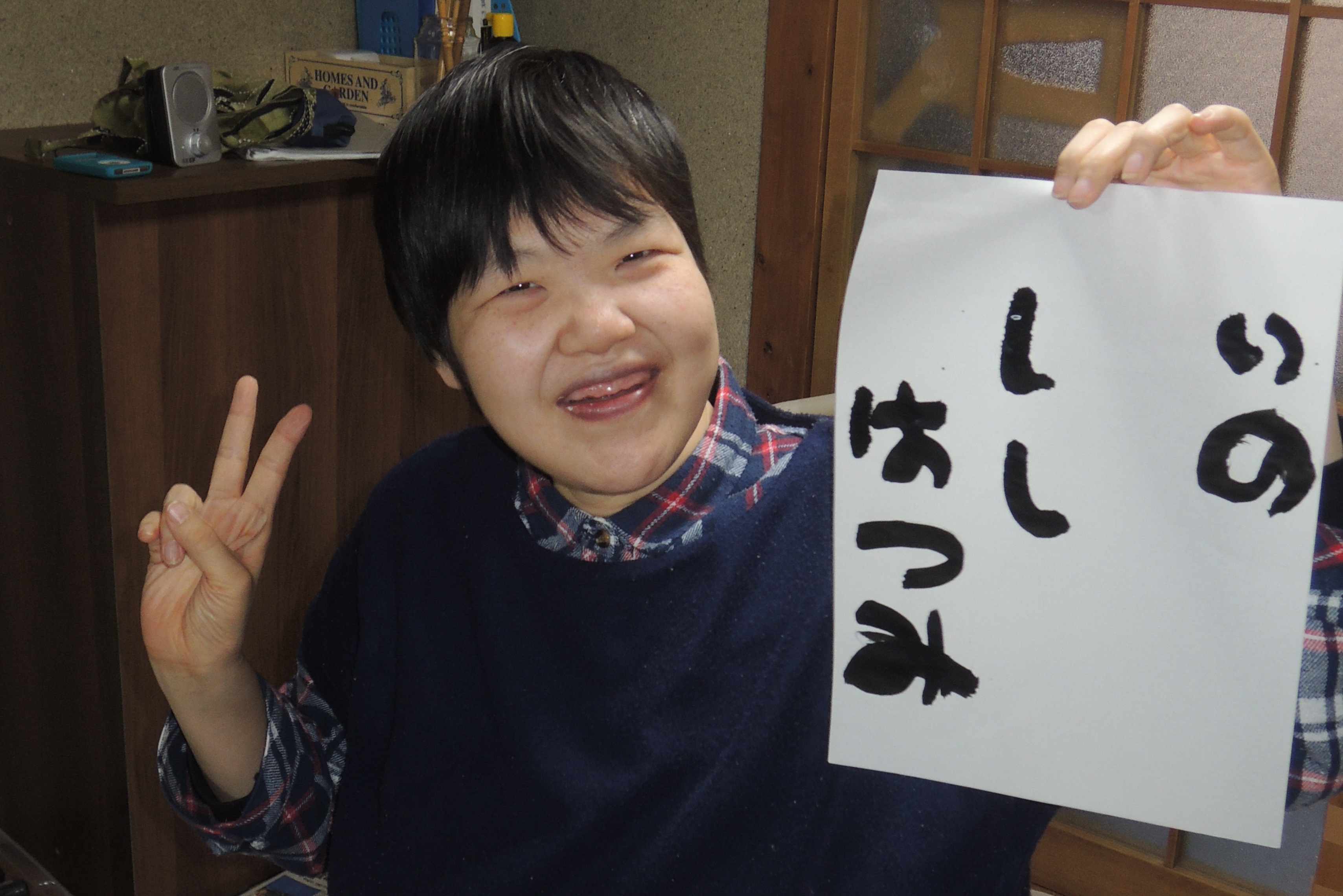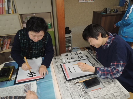 最近は、なかなか筆を持って字を書くことが少なくなり、筆を上手く運べなかったですが、何度も練習を重ねて、字を書いていきました。練習をしながら、どんな文字を書こうか、どんな文字が書きやすいかを考えて練習をしました。 そして、清書に入ります。 真っ白な半紙にひと筆入れるときの緊張感は、何とも言えないモノがありますね。どんな文字を書かれるのかと伺っていると、今年の干支『亥』と書いた作品や、『元気』と今年の目標や抱負を書かれた作品など、新年に相応しい文字がみられました。中には平成最後の年明けということもあり、『平成』と書かれた作品や、好きな人の名前を書かれた作品もあり、その方の思いや意気込みを感じられる作品がたくさんありました。 ![]() |