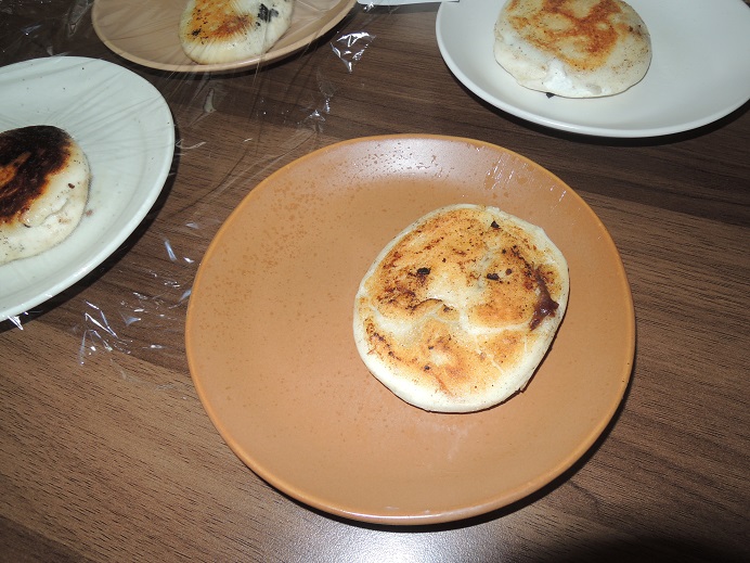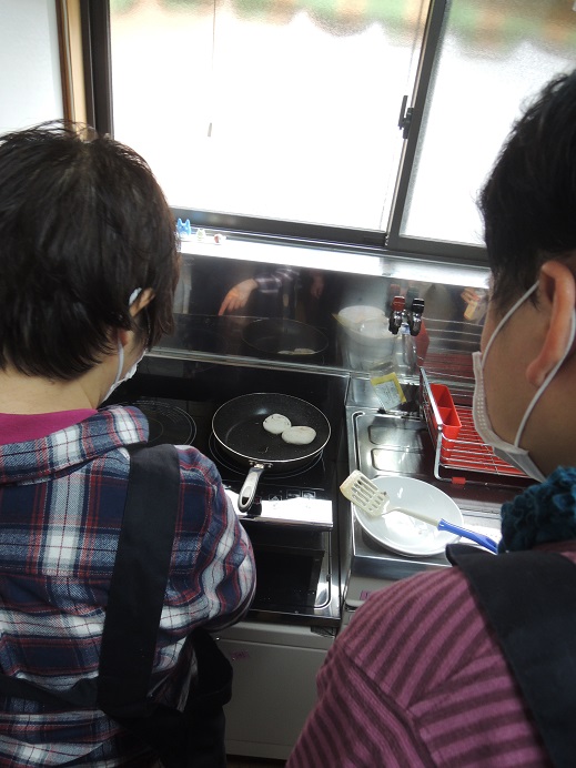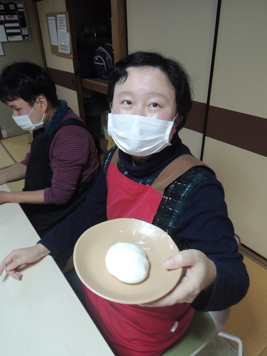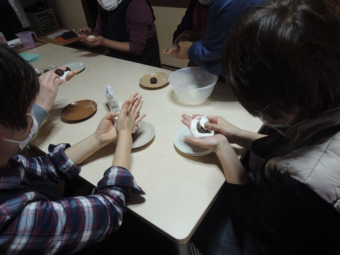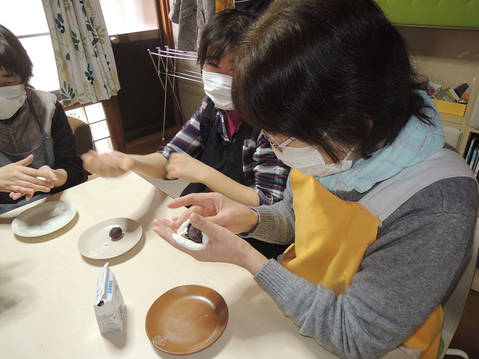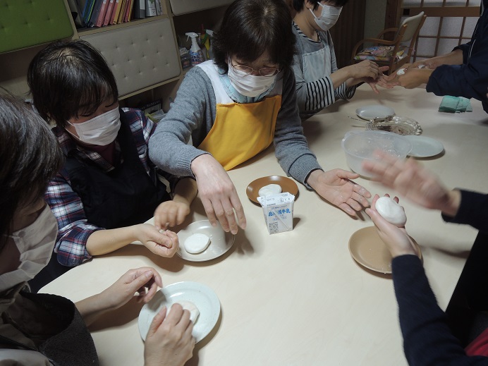 分室のどれみふぁ荘では、白玉粉と牛乳で作った皮で餡を包んで焼いた、ミルク焼き餅を作りました。