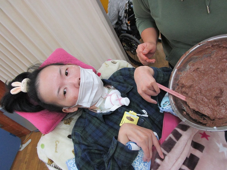 デイルームはチョコレートの香りで満たされて、良い香り! 仕上げにひと混ぜして、小分けしました! |