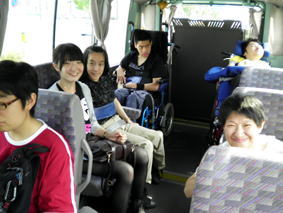 【バスの中でおしゃべり 楽しそうですねぇ〜】