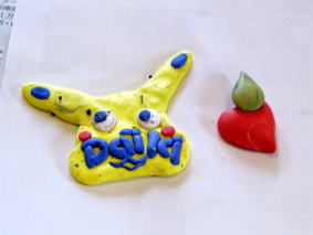 粘土は、黄色・赤色・青色・白色の4色があり、これらの色を巧みに組み合わ