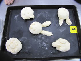 そして、用意されたパン生地に、ウサギやカメなどの形に整形して行きます。形