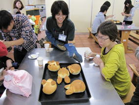 この後、作ったバターを焼きあがったパンに塗って試食!パンをお土産にした方は、